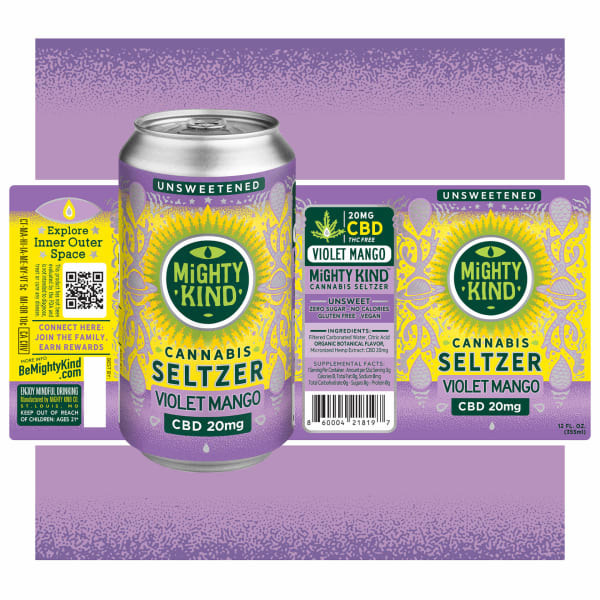24-pack case of Violet Mango CBD unsweetened seltzer